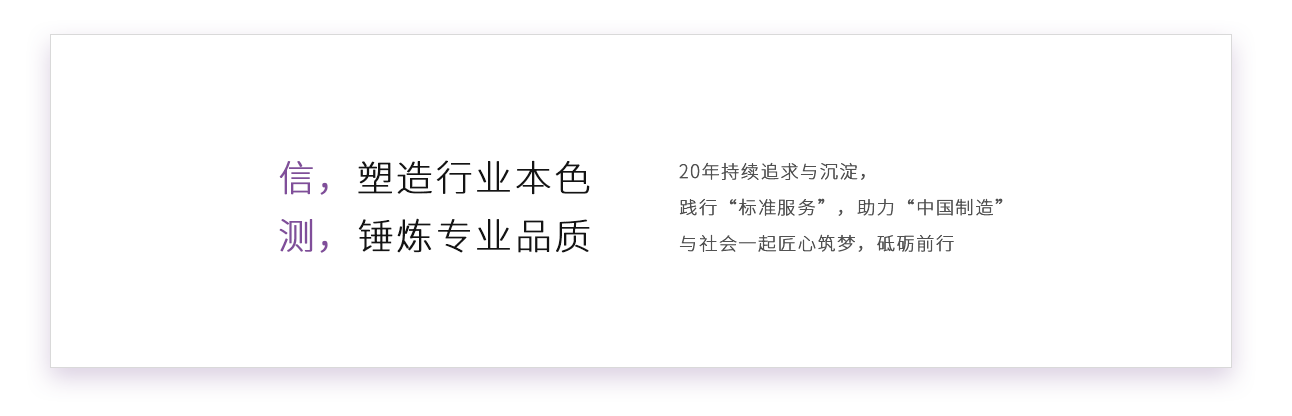信測標準擁有多項專利技術和軟件著作權,先后獲得“國家級高新技術企業(yè)”、“廣東省中小企業(yè)公共技術服務示范平臺”、“江蘇省生產(chǎn)性服務業(yè)領軍企業(yè)”、“廣東省名牌企業(yè)”、“深圳市生產(chǎn)性服務業(yè)公共服務平臺”等稱號。公司秉承“立信、善測”的經(jīng)營理念,致力于通過卓越的服務,幫助客戶提高研發(fā)和創(chuàng)新水平,提升產(chǎn)品質量,創(chuàng)造美好生活。